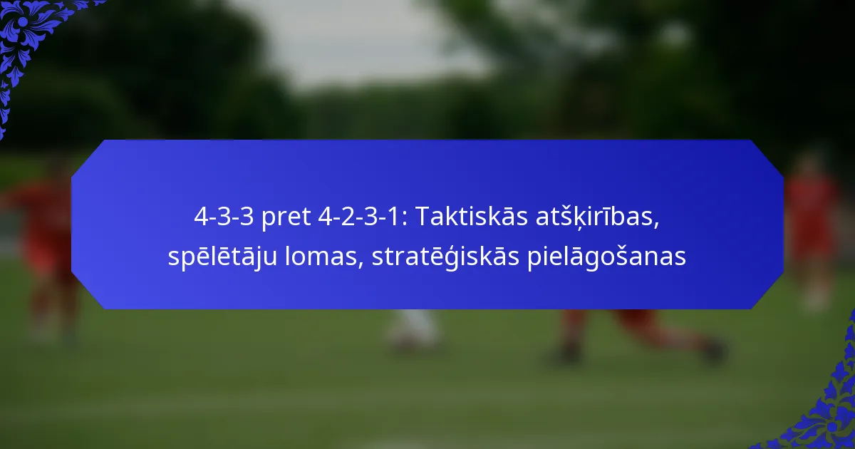 4-3-3 formācija piedāvā daudzveidīgu taktisko ietvaru, kas uzsver gan uzbrukuma, gan aizsardzības stratēģijas. Izprotot, kā pielāgot šo formāciju dažādām spēles situācijām, komandas var uzlabot spēlētāju attīstību un taktisko izpratni.