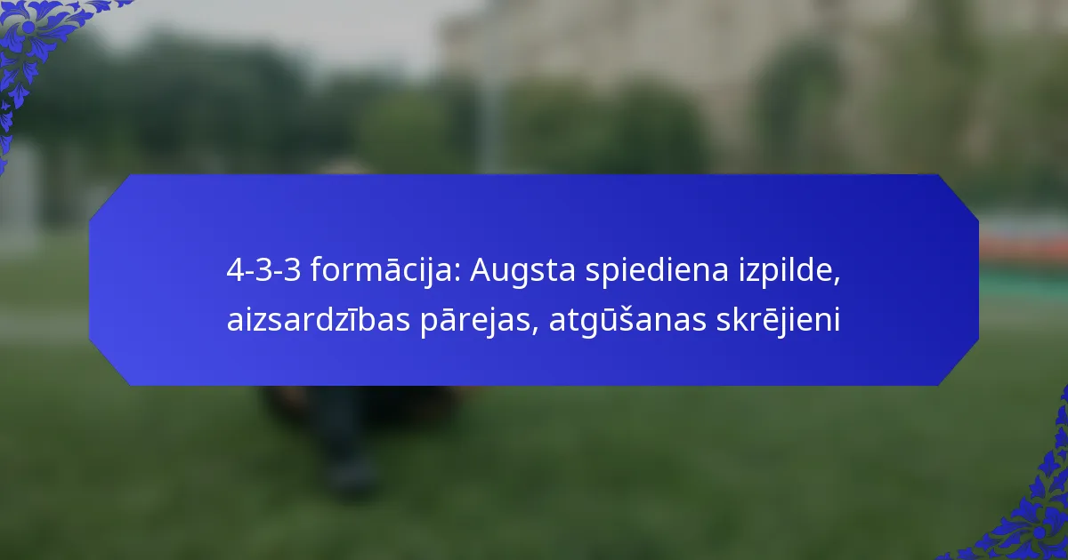 4-3-3 formācija ir dinamiska taktiskā uzstādīšana futbolā, kas līdzsvaro uzbrukuma spējas ar aizsardzības stabilitāti. Izpildot augsto presingu, komandas var efektīvi spiest pretiniekus viņu aizsardzības trešdaļā, cenšoties ātri atgūt bumbu. Turklāt aizsardzības pāreju apgūšana ir būtiska, lai saglabātu komandas organizāciju un samazinātu risku ielaist vārtus, kad bumba maina īpašnieku.