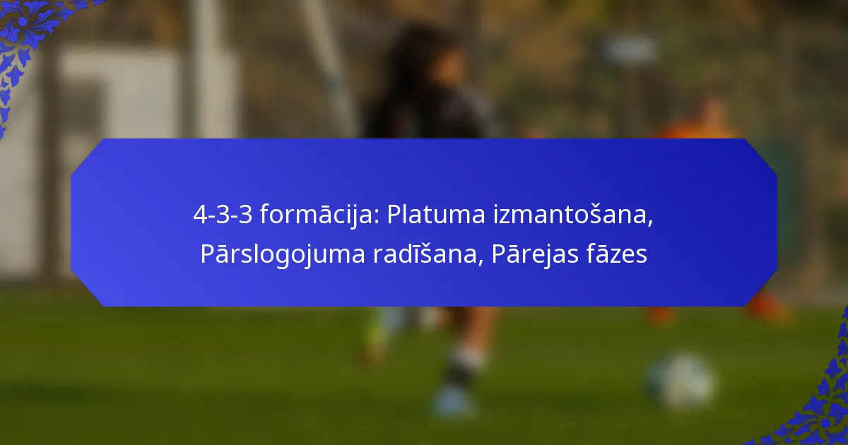 4-3-3 formācija raksturojas ar spēlētāju izvietojumu laukumā, kur četri aizsargi ir novietoti aizmugurē, trīs pussargi centrā un trīs uzbrucēji vada uzbrukumu. Šis izkārtojums ļauj elastību gan uzbrukuma, gan aizsardzības fāzēs. Formācija ir izstrādāta, lai radītu platumu uzbrukumā un nodrošinātu atbalstu aizsardzībā.
