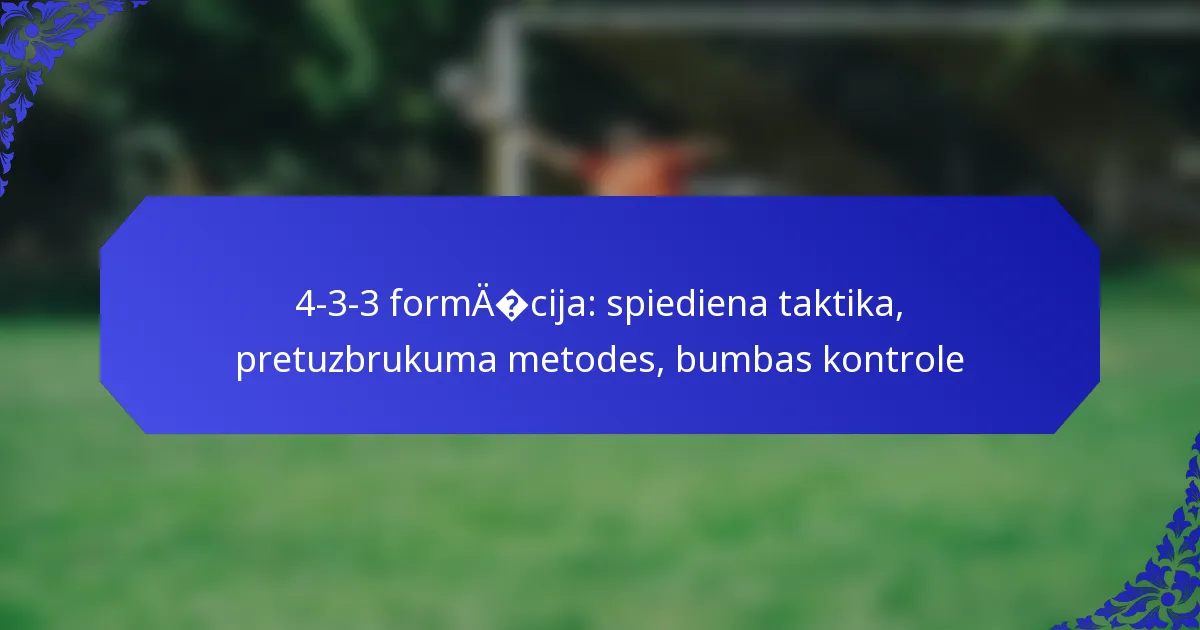 Bumbas kontrole 4-3-3 formācijā balstās uz efektīvām piespēlēm, stratēģisku kustību un spēlētāju lomām. Komandas izmanto specifiskas taktikas, lai kontrolētu spēli, nodrošinot, ka tās saglabā bumbu un rada vārtu gūšanas iespējas.